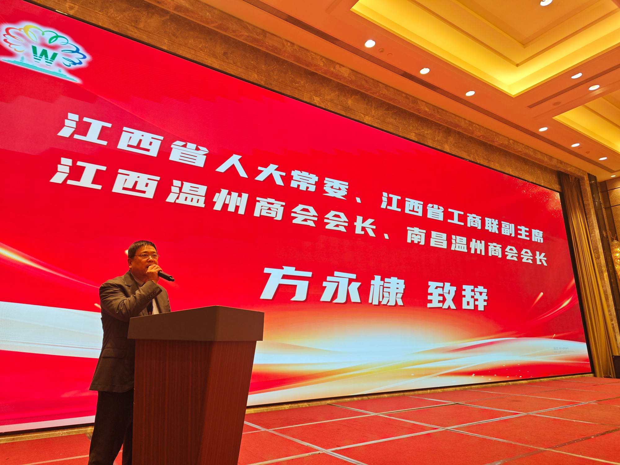 江西省人大常委、江西省工商联副主席、江西温州商会方永棣会长在致辞中,回望了过去一年的足迹,同时祝愿大家生活丰富多彩。方会长说到:工作,是为了更美好的生活。愿新的一年,大家既能专注于眼前的生意,也能在黄昏陪家人漫步。愿在2026年,大家既能品尝温暖的人间烟火,也能追寻遥远的星辰大海,希望大家在商会这个平台下,所有的在赣温商们精诚团结、资源共享、互相帮助,发挥“敢为人先、与时俱进”的精神,把自身做好,把企业做大做强,助推江西经济的发展。并对从温州、赣州、九江、宜春、抚州等外地赶来参加活动支持商会工作的老乡们表示衷心的感谢!